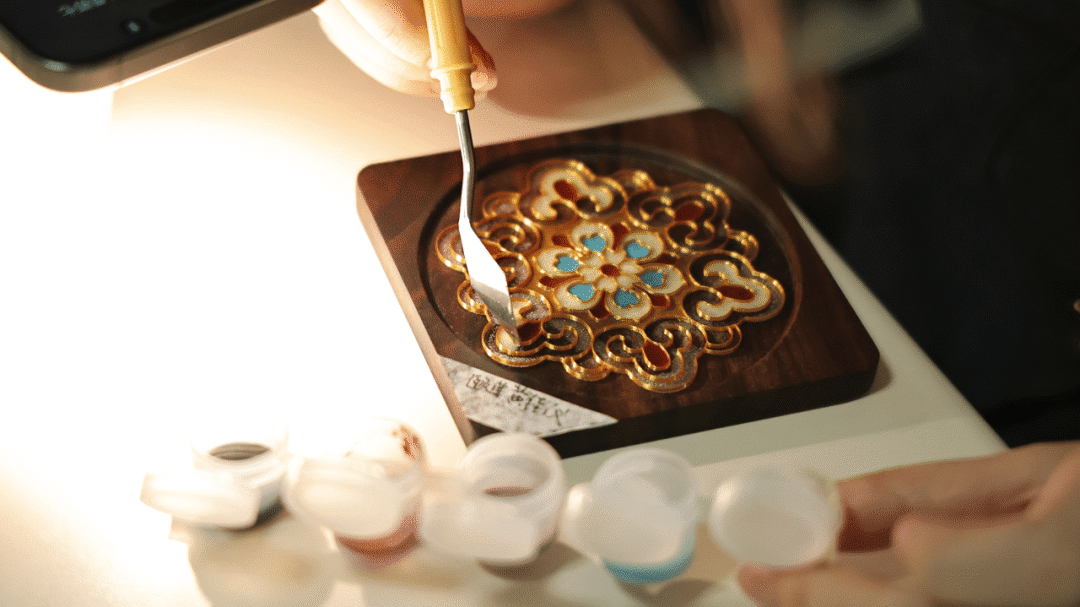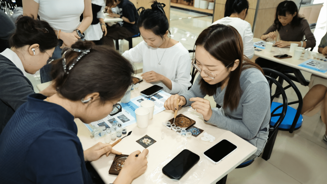 創(chuàng)作環(huán)節(jié)隨即開啟,職工們沉浸于掐絲琺瑯的精細制作中。借助活動預備的材料包,大家專注地為圖案填料上色,一件件獨具個人風格的作品初見雛形。現(xiàn)場交流熱烈,洋溢著對成品的期待與對活動組織的贊許。